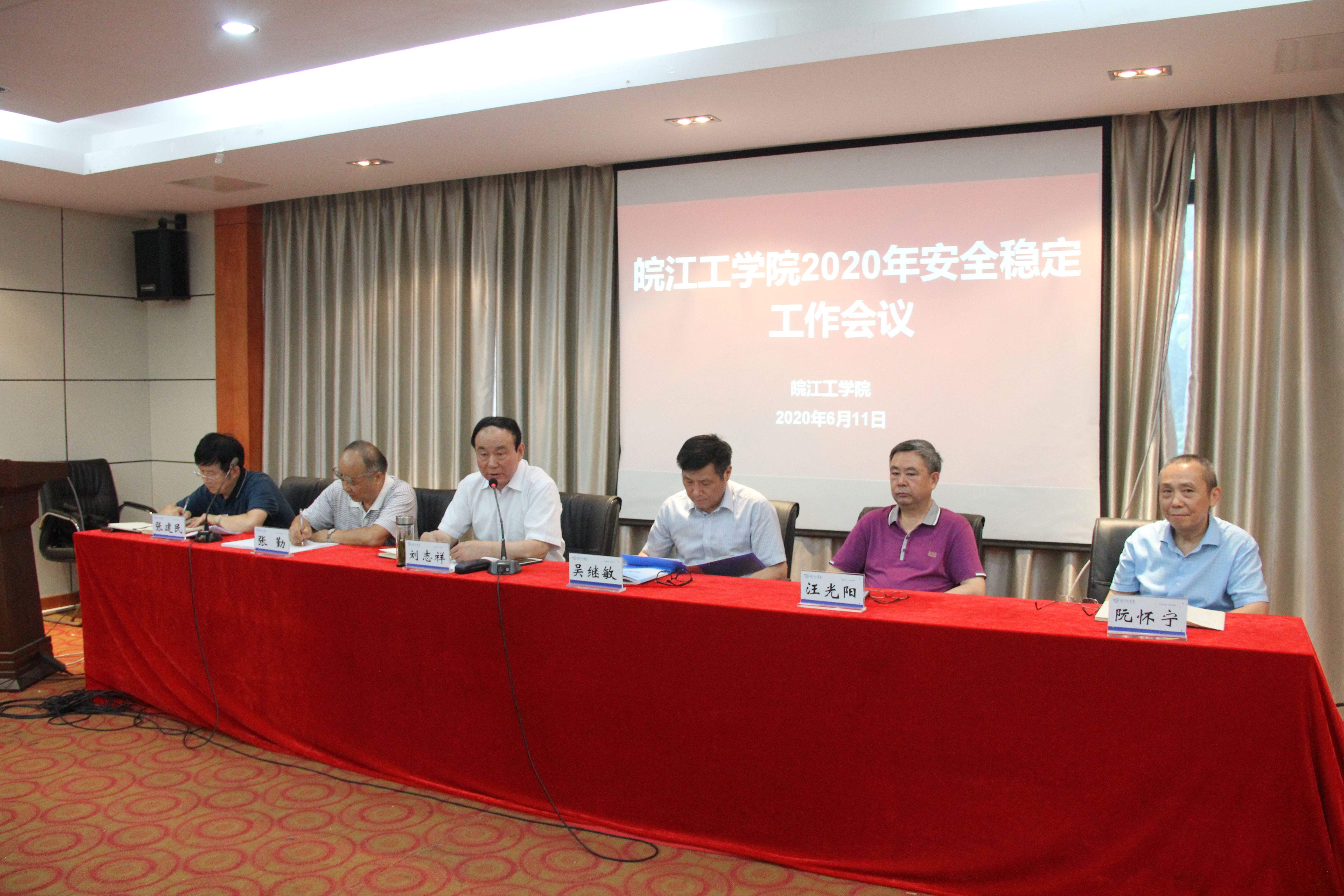 2020年6月11日下午,今年会jinnianhuicom2020年安全稳定工作会议在霍里山校区召开。校党委书记刘志祥出席并做重要讲话。校长吴继敏,校党委副书记张勤,副校长张建民、阮怀宁,所有中层干部参加会议。会议由张建民主持。