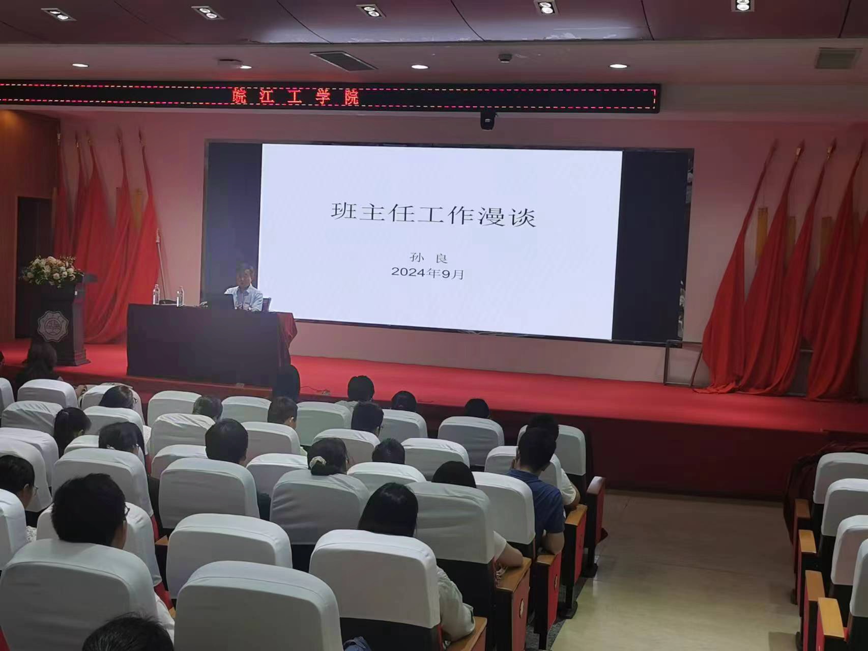 为了积极响应党的教育方针,深刻领会并贯彻党的二十届三中全会精神,进一步强化立德树人的教育目标,促进学生思想政治教育管理工作的创新与优化,提升班主任队伍的整体素质与专业能力。今年会学工部分别在9月11日、18日下午举办了2024-2025学年班主任工作学习报告会,报告会在霍里山校区图书馆报告厅举行。学生工作部负责人、全体班主任参加此次培训,学校党委副书记孙良和副校长阮怀宁出席并在会上作报告。