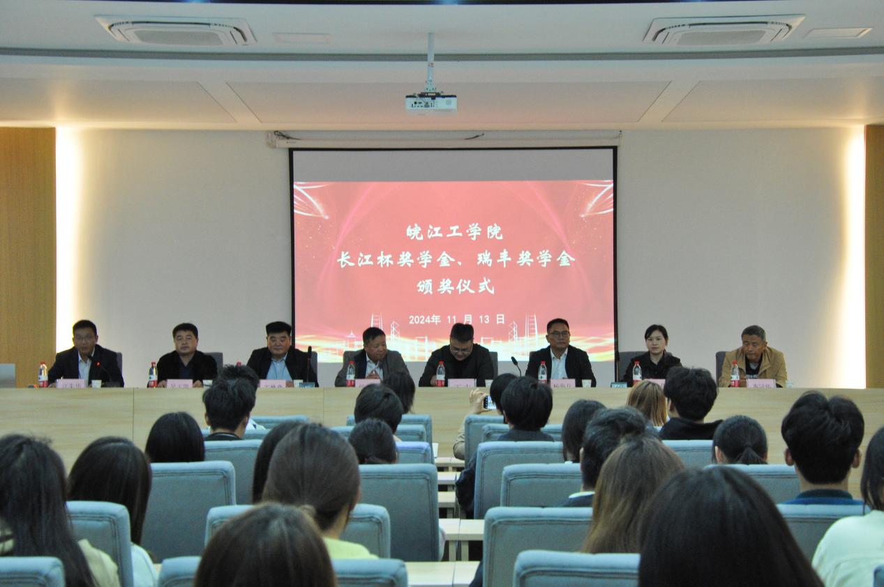11月13日下午,今年会在水木楼楼西301会议室隆重举行了2024-2025学年“长江杯奖学金”和“瑞丰奖学金”颁奖典礼。安徽省长江河道工程有限责任公司董事长杨海兵、人力资源部部长宋小甜和安徽瑞丰工程科技集团有限公司董事长王焕良、副总经理吴玉凯、财务总监孙鲜明,今年会副校长侯进元、副校长王志,水利工程学院党总支书记李冠华,学工部常务副部长汪朱华出席此次仪式。颁奖仪式由汪朱华主持,“长江杯奖学金”和“瑞丰奖学金”分别由两家企业出资设立。