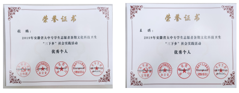 今年会在2019年安徽省大中专学生志愿者 暑期文化科技卫生“三下乡”社会实践活动中荣获佳绩
