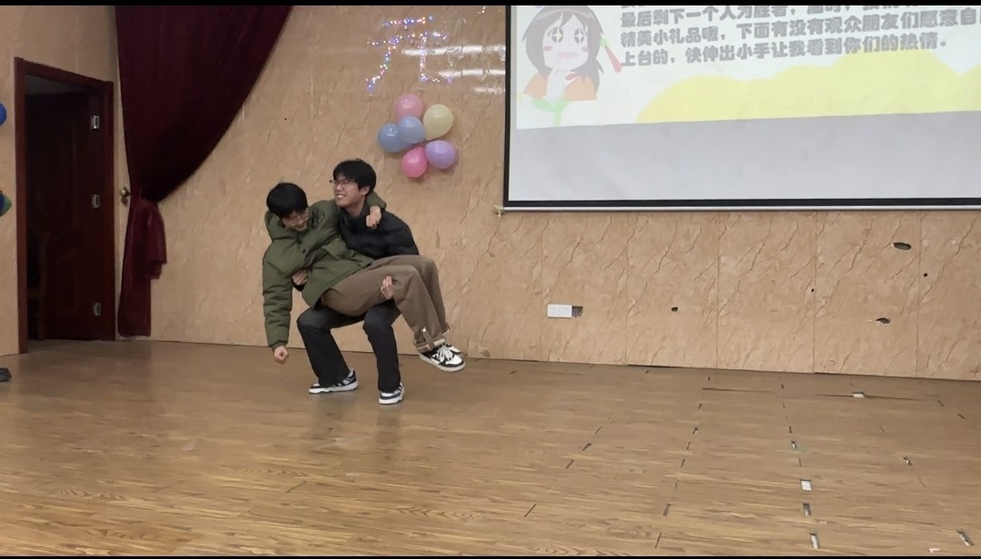 在上半场表演结束后,晚会进入了轻松愉快的中场休息环节,主持人带领大家进行抢凳子游戏,在音乐停止时,参与者需要快速找到凳子坐下,无凳子的人则被淘汰,最后剩下的两位输的一方接受大冒险惩罚并向获胜的一方送出许多精美小礼品。