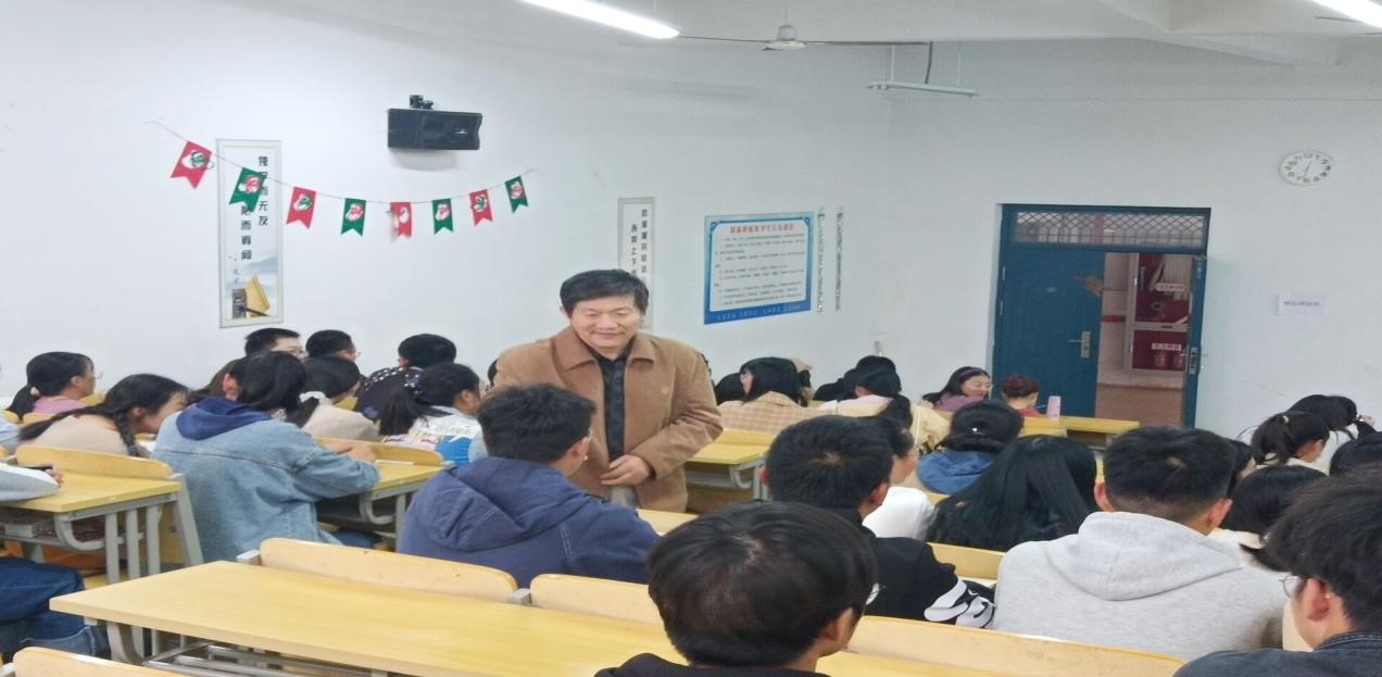 讲座接近尾声,王教授走下讲台,与台下学生展开互动,他耐心的解答为初步进入大学生活的同学们指明了方向,引导新同学树立正确的世界观、人生观、价值观。