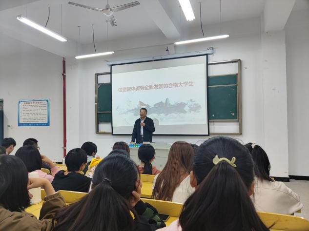讲座伊始,杨安胜书记指出德智体美劳全面发展是我国高等教育中的重要内容,也是素质教育的基本要求之一。杨安胜向同学们详细介绍了五育并举的意义,强调同学们要成为德智体美劳全面发展的社会主义建设者和接班人,并对五育内容提出了明确要求。此外,杨安胜要求青年大学生要坚定理想信念做能堪当大任的新时代青年,要勤奋学习努力成为社会有用之人。最后,杨安胜送给全体同学一句话:为天地立心,为生民立命,为往圣继绝学,为万世开太平。希望每位大学生都能成为德智体美劳全面发展的当代新青年!