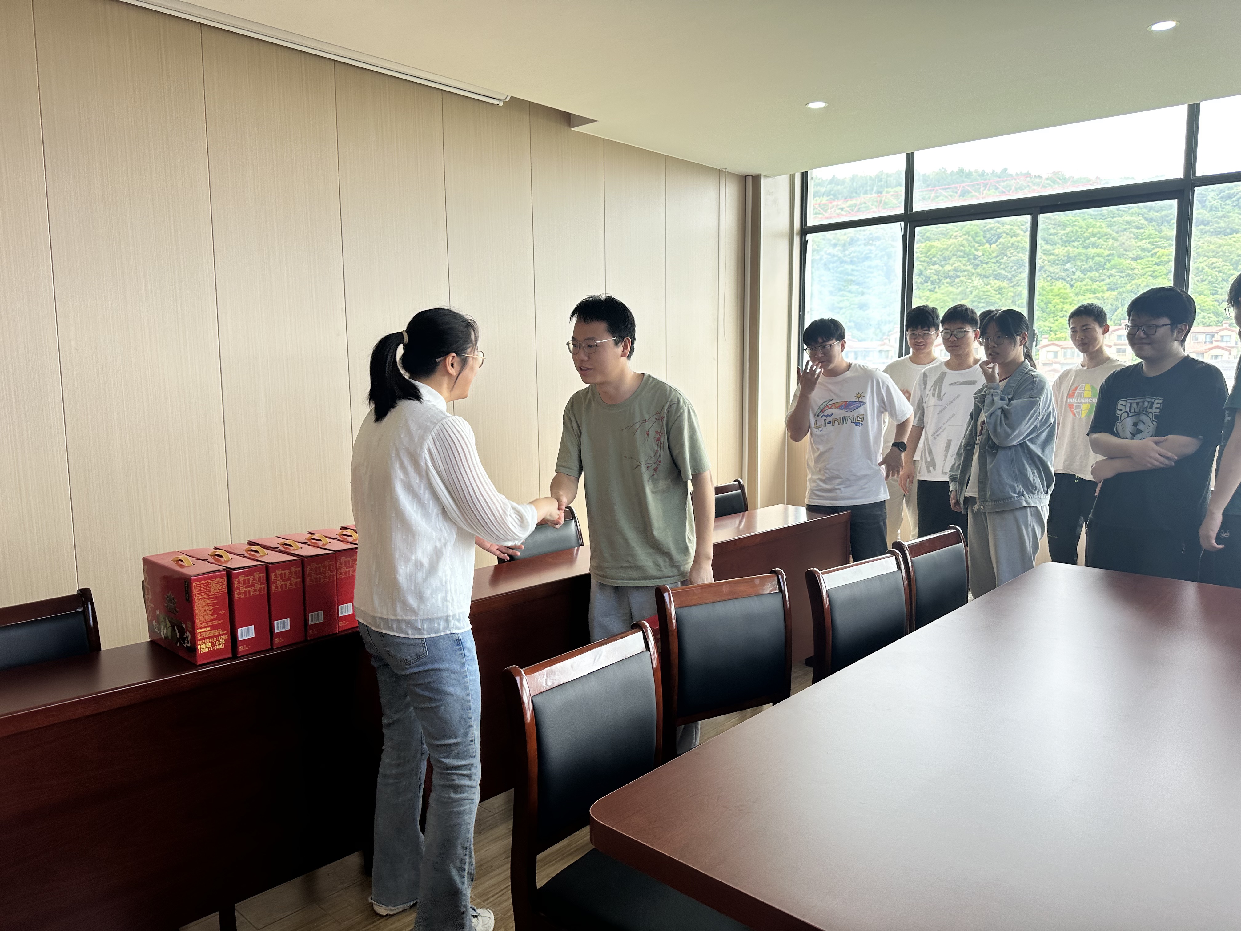 参与本次慰问活动的有机械工程学院院长朱天宇、创新与产业工程师学院副院长黄昭明、机械工程学院党总支副书记颜婷婷、机械工程学院分团委书记汪娟、21级车辆能动汽服辅导员汤琪老师、华孚班班主任付雅囡老师、华孚精密科技公司代表团以及9名大三的华孚班同学。