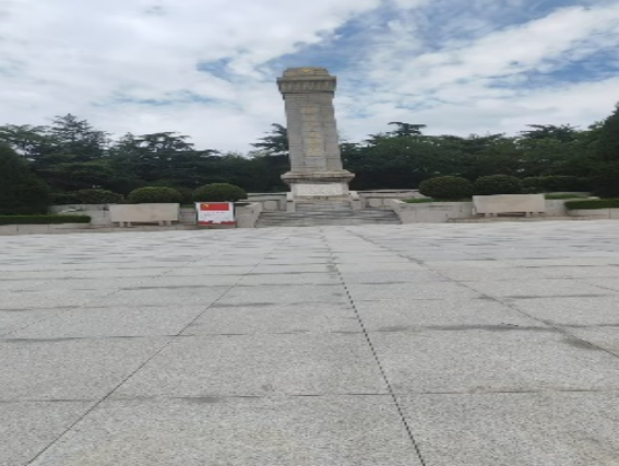 走进陵园,映入眼帘的是那高大雄伟的纪念碑,它静静地矗立在那里,仿佛在诉说着一段沉重的历史。在阳光的照耀下,镌刻着金色的“革命烈士永垂不朽”八个大字闪闪发光,仿佛在诉说着一段段可歌可泣的英雄传奇。实践队员们怀着对先烈崇高的敬意和深深的感激站在纪念碑前鞠躬致敬。革命先烈用鲜血和生命为我们开辟了美好未来,我们一定要倍加珍惜。