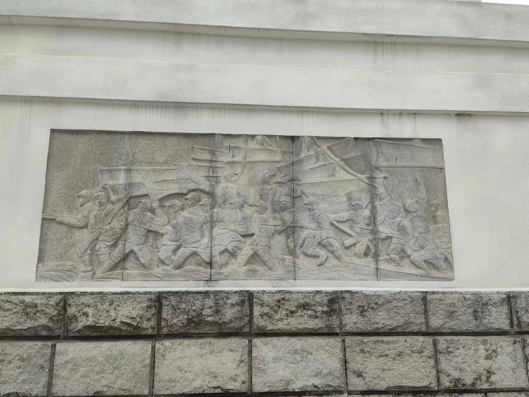 我们的第一站就是位于安徽省安庆市望江县香茗山路与雷池大道交叉口东南300米处的渡江战役烈士陵园。远远望去,清风徐徐,我不经想到一句话“前人栽树,后人乘凉”。当年前辈们用血肉之躯赢得了现在和平的时光,现在如同当年树影依旧庇护这我们遭受太阳的炽烤。无名烈士如同这里的树木“无名”一直默默付出,可是他们的功绩我们不能忘记,我们享受着当前树木的一丝丝阴凉,同时也享受着他们取下的余晖,不能忘记树木给的阴凉也不能忘记烈士的牺牲,正应为如此也不显得“无名”,再往前走一点便能看见毛主席所说的话,不仅是形容当年,也同样鼓励着我们,看着当年战斗的浮雕不由得升起一股钦佩之情,一股名为“向上“的气慢慢升起我们都敢为国家富强做出贡献乃至如同当年前辈为国家做出牺牲。