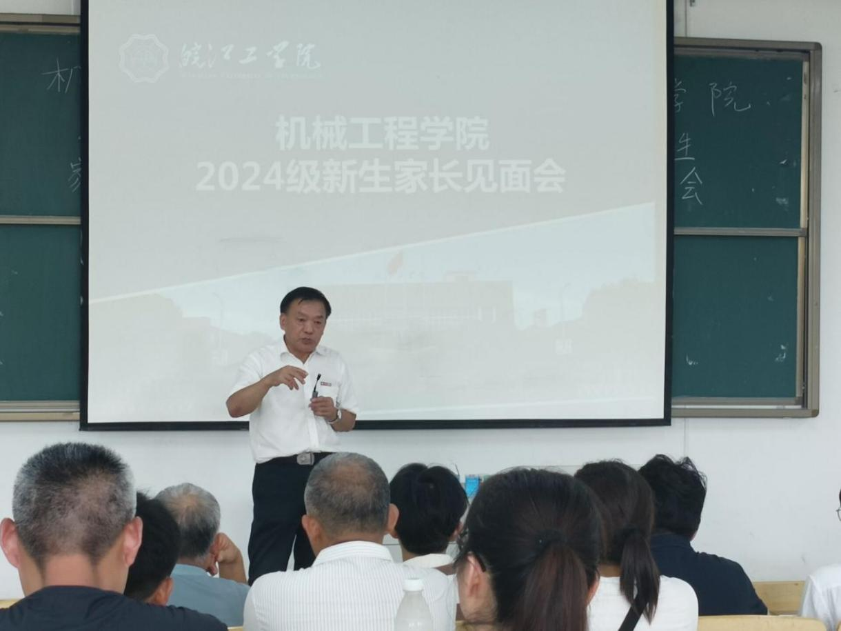 学院领导也对此次迎新工作给予高度重视。机械工程学院常务副院长赵恒文、党总支副书记颜婷婷、分团委书记汪娟亲临现场,详细询问新生报到的具体情况,对迎新工作的有序开展给予了充分肯定。不仅确保了报到工作的顺利进行,还亲自指导工作,及时处理了可能出现的各种情况,展现了高度的责任心与专业素养。下午一点,院长赵恒文、党总支副书记颜婷婷、分团委书记汪娟于B202主持2024届新生家长见面会。会上主要简述机械工程学院学生就业方向、毕业条件等问题。在会上,很多家长积极反馈自己的疑问,赵恒文院长一一耐心解答,排解家长疑虑。