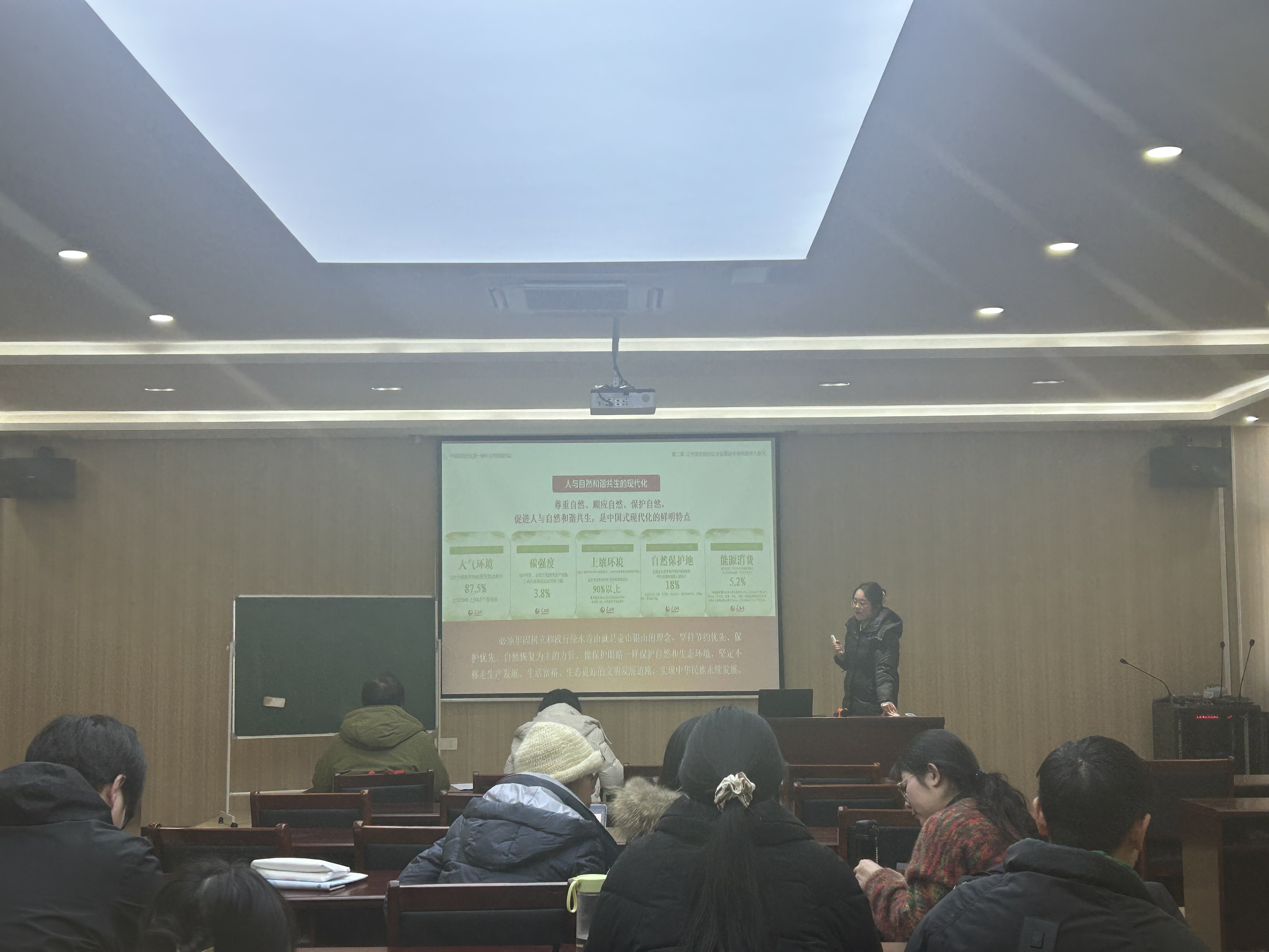 拟于下学期上新课的教师就自己将主讲的课程试讲。涉及《马克思主义基本原理》《毛泽东思想和中国特色社会主义理论体系概论》《习近平新时代中国特色社会主义思想概论》等几门课程。参加试讲的教师准备认真、充分,展现出了积极态度和良好风采。