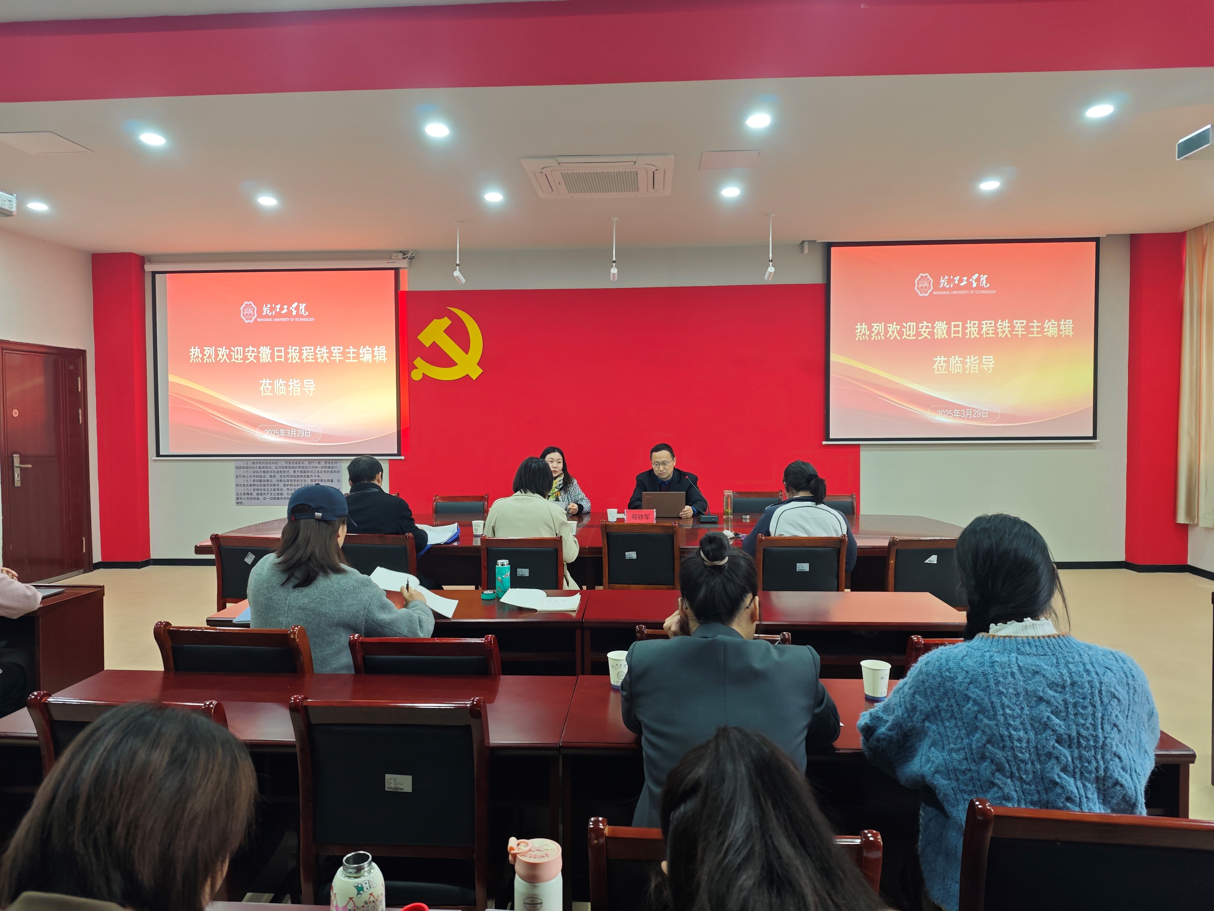 3月29日上午,马克思主义学院邀请安徽日报理论部主任编辑程铁军博士在党员活动室作《党报理论文章的风格特征与写作要点》专题报告,安徽日报社理论部主编程铁军,马克思主义学院总支书记、常务副院长刘双,教学副院长胡耀东、教研室主任及马克思主义学院全体教师参加。会议由刘双主持。