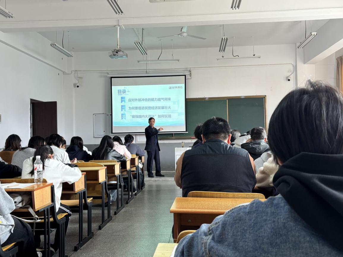 丁家云、孙良以“正确认识中国经济热点问题”为主题,进行了系统讲授。课程聚焦当前社会普遍关注的经济领域重点难点,分为三个部分层层深入。在第一部分“应对外部冲击的能力底气何来?”中,深入剖析了中国经济在面对复杂严峻国际环境时所展现出的强大韧性与抗风险能力,系统阐述经济长期向好的支撑条件和基本趋势没有变;第二部分“为何要促进民营经济发展壮大?”重点解读了民营经济在推动经济增长、促进创新、增加就业、改善民生等方面不可替代的重要作用。第三部分“做强国内大循环如何实现?”则围绕构建新发展格局的关键任务,探讨了如何有效夯实国内大循环的主体地位,促进国内国际双循环相互促进,从而巩固和增强经济回升向好态势。