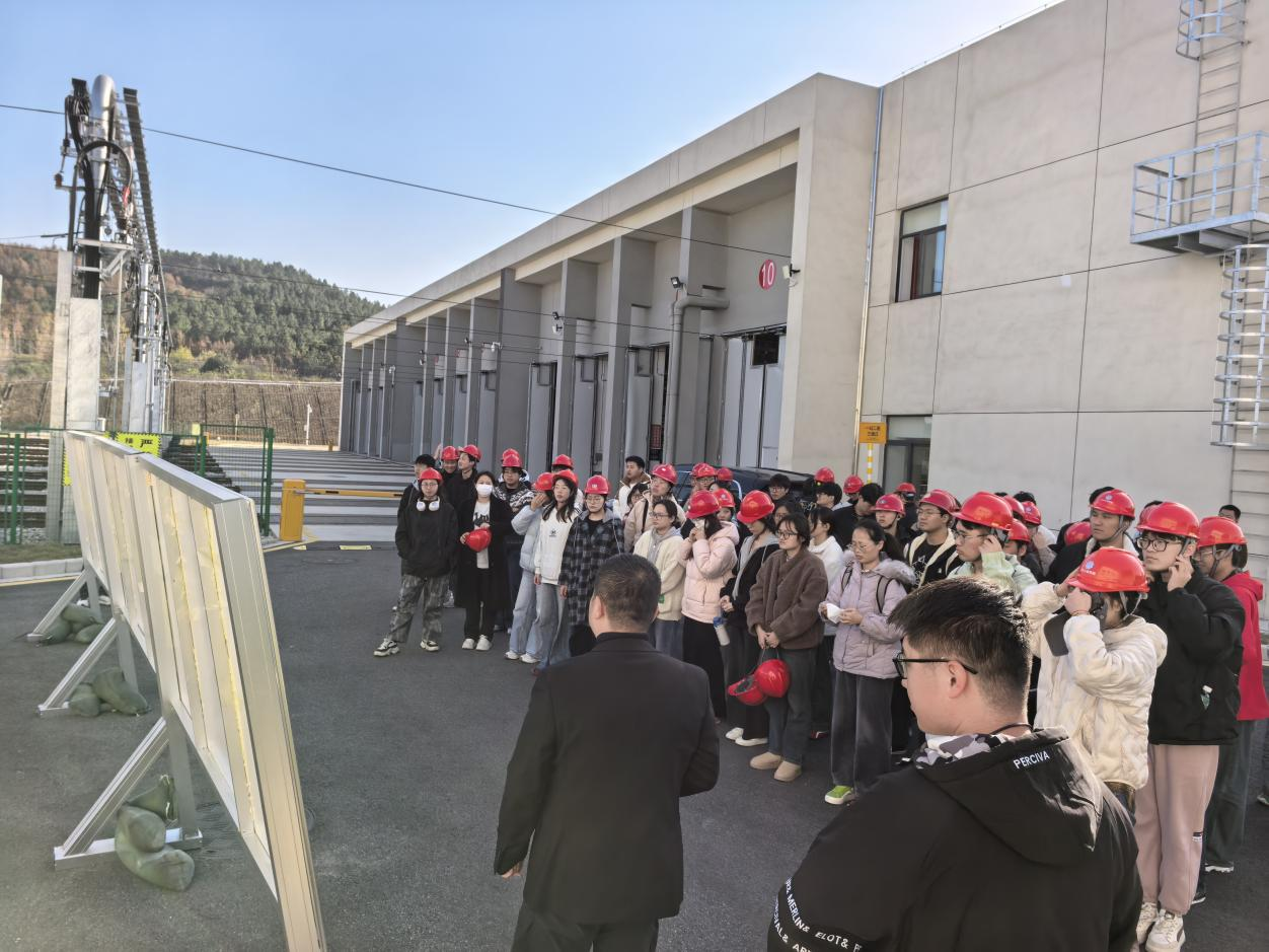 实习首站聚焦马鞍山湖北路过江通道。作为连接长江两岸的交通关键工程,该项目“隧道+桥梁”的综合建设方案极具技术代表性。现场工程师详细解读了项目规划逻辑、复杂地质勘察难点,以及应对高水压、强渗透等施工挑战的创新工法,同时重点介绍了施工全过程的环保管控标准与风险防控措施,让同学们深刻体悟到大型越江工程的技术深度与社会责任担当。