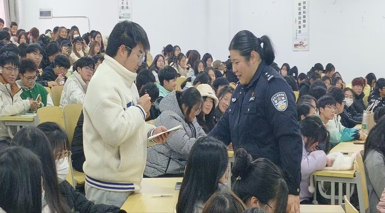 来自和县公安局的贾警官先介绍了本次活动讲座的主题——防范电信诈骗。贾警官先以热播电影《孤注一掷》中的300万亿的诈骗资金举例,资金数量之庞大,瞬间点燃同学们的热情。接着贾警官结合实际的诈骗案例和法律知识,以案说法,深入浅出地向学生们讲解了什么是电信诈骗、电信诈骗的常见套路、如何识别防范诈骗,重点强调了电信诈骗多样性、隐蔽性等特点,提醒学生在日常生活中要注意防冒身份诈骗、购物类诈骗、利诱类诈骗等多种诈骗类型。此外,在活动过程中,贾警官多次进行关于防诈知识的提问,同学们纷纷抢答,现场氛围热烈,充满活力与激情,更加巩固了此次讲座所学到的知识。同学们还积极参与讨论,分享自己或身边人的遭遇,从中汲取经验教训。不知不觉活动已接近尾声,最后同学们与警官进行了拍照留恋,此次活动圆满结束。