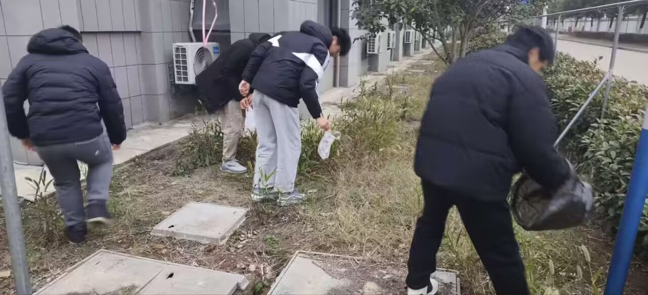 活动开始前,辅导员向同学们强调了劳育共建活动的目的、意义及注意事项,并说明了具体任务和分工,统一下发了垃圾袋等劳动工具。劳动过程中,同学们热情高涨,不怕脏不怕累,特别对包干区内的白色垃圾进行了仔细清理。天气寒冷,但活动现场氛围热烈,充满了欢声笑语与温馨。