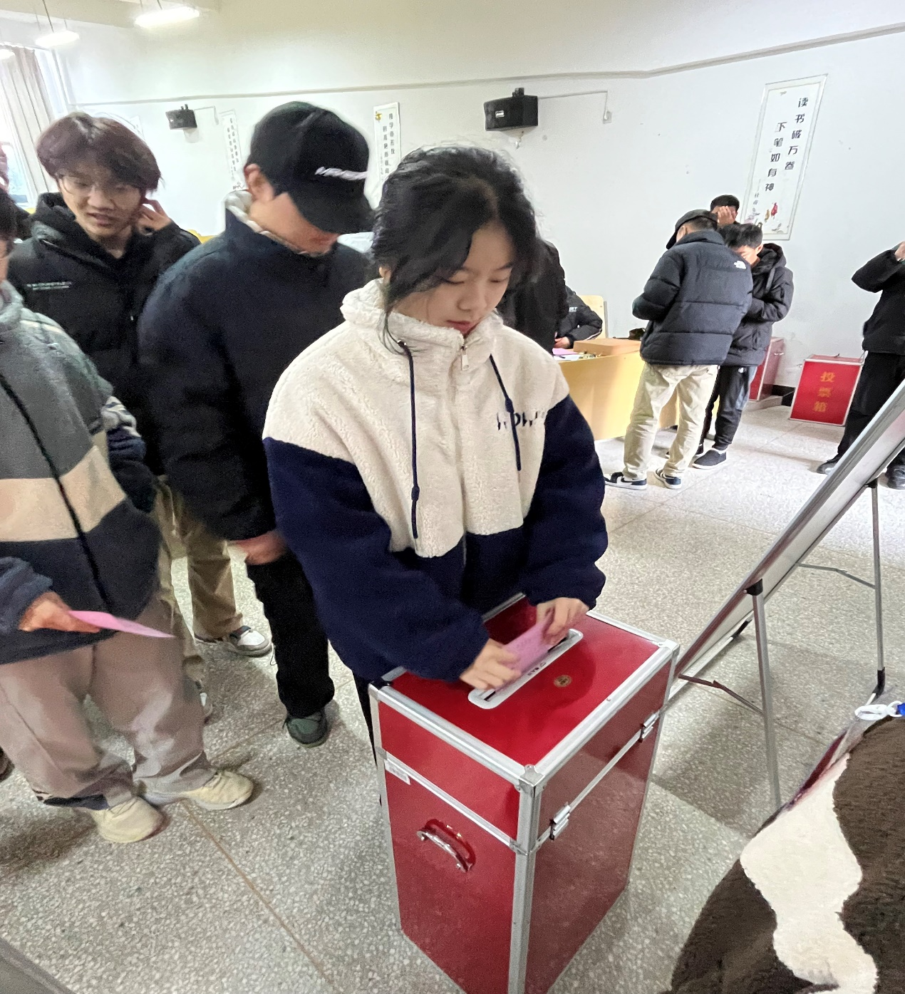 为确保选举投票工作的顺利进行,学校提前做好了充分的准备工作。学校制定了详细的选举工作方案,明确了选举工作的步骤、时间节点和责任人。同时,学校还通过多种形式广泛宣传选举工作的重要意义、选举程序和注意事项,提高了广大师生的知晓率和参与度。投票当天,学校在教学楼设立了多个投票站,供各个专业投票。投票前由各专业代表去D102领取本专业选票,带回各自专业投票点向同学们发放选票。选票下发后,由各班班干和辅导员有序指导并讲解选民选举投票活动的步骤及注意事项。在大家认真填选完选票后,同学们依次走到红色票箱面前,郑重地投下自己神圣的一票。现场投票氛围庄重热烈,每个投票点都配备了充足的工作人员,确保了投票的顺利进行。整个投票过程秩序井然,充分体现了选民的民主权利和选举的公平、公正、公开原则。投票结束后,同学有序退场,同时此次人大代表选举投票工作也圆满完成。