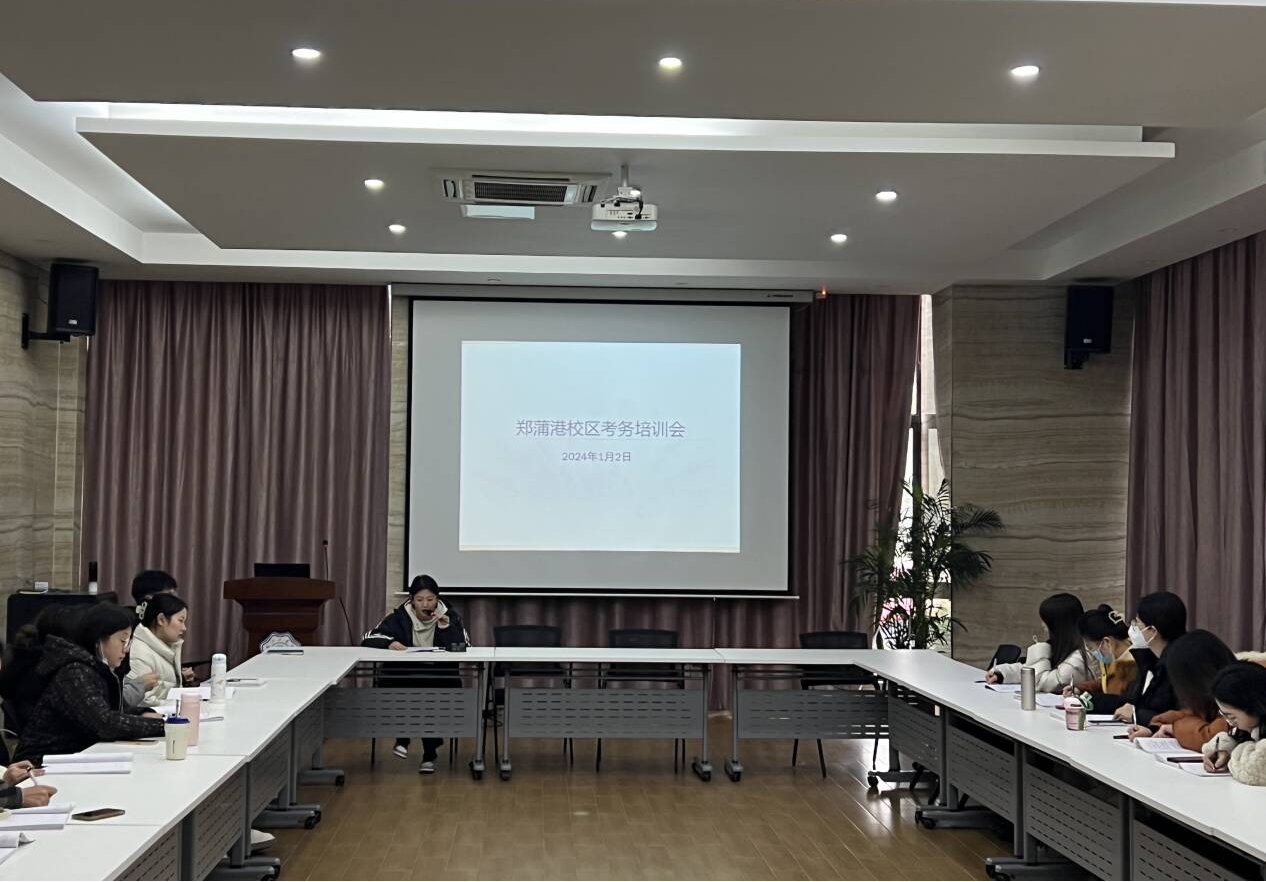 为保证期末考试顺利进行,2024年1月2日下午2点,在学工部的配合下,郑蒲港校区教学科研办公室在行政楼1号会议室召开2023-2024学年第一学期期末考务培训会。校区全体新进教师参会。