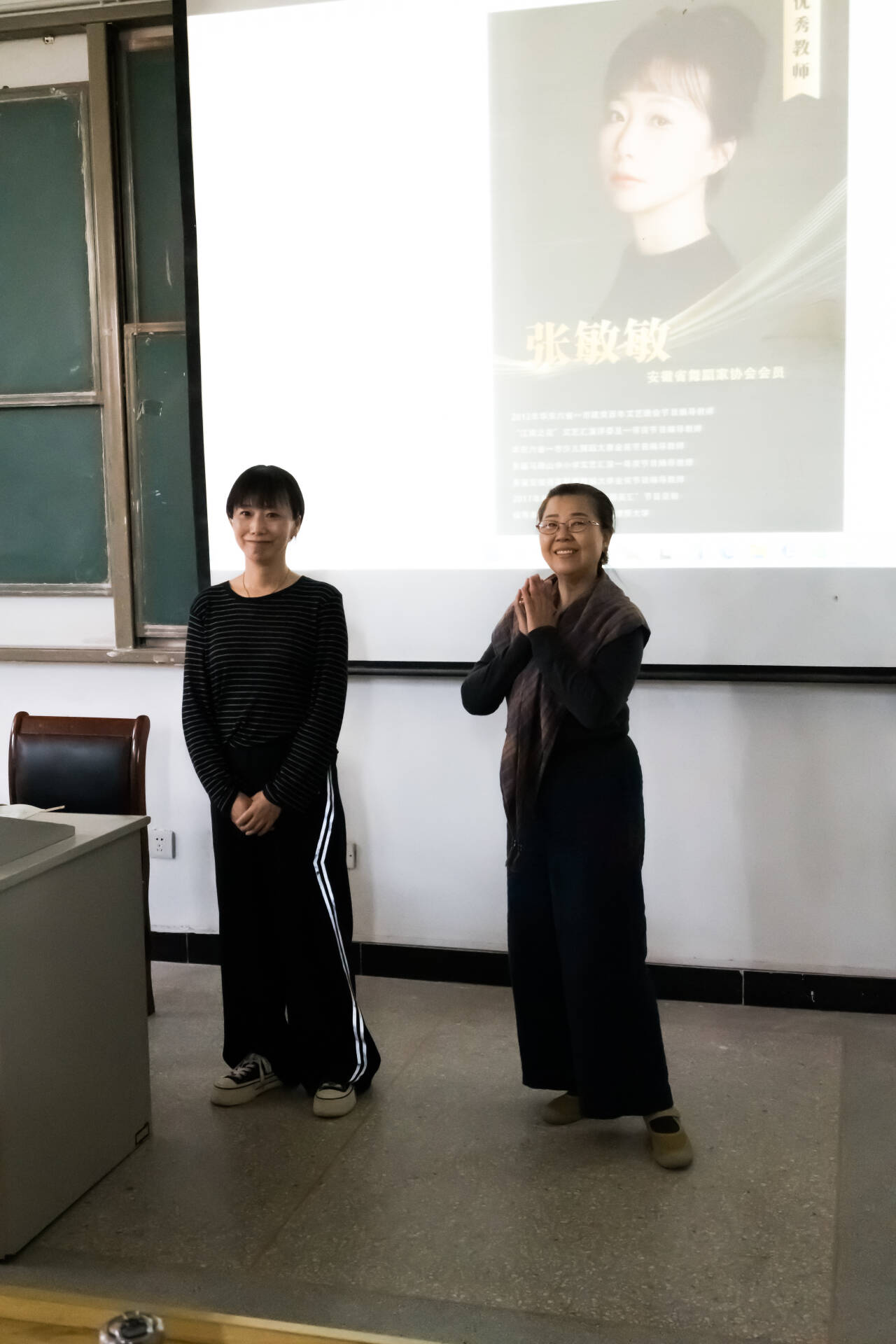 下午两点,讲座正式开始。此次讲座荣幸邀请到安徽省舞蹈家协会会员、中国舞蹈家协会注册舞蹈教师、前江苏青年舞团成员张敏敏女士主讲。在讲座过程中,张敏敏女士为大家展示了一段有关南京大屠杀的震撼心灵的舞蹈剧片段,这场舞台剧以张纯如记者的视角进行演绎,令在场的每一位观众都仿佛穿越时空,与那个时代的人们展开了一场心与心的交流。他们的呐喊、挣扎和不屈不挠的精神仿佛在耳边回响,提醒我们,即使在阳光明媚的当下,也切勿忘却那黑暗沉重的往事。除此之外,张敏敏女士还为我们呈现了其他舞剧的精彩片段,令我们叹为观止,犹如沐浴春风,一窥千年底蕴的瑰丽辉煌,深入体会中华文化的独特魅力。讲座结尾还为大家展示了各个学长学姐对于舞蹈的理解,表达了对大家的祝福。