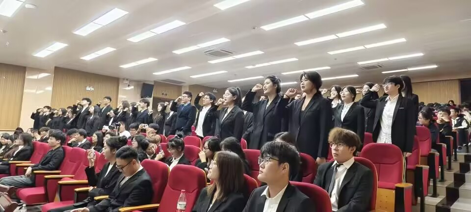换届大会在庄严的《共产主义青年团之歌》中拉开帷幕。会议伊始,主持人简要介绍了大会的背景和意义,并对参会人员表示热烈欢迎。歌曲结束后,众人落座,共同观赏郑蒲港校区第十届分团委的宣传短片以及收录了教师们祝福的影像资料。短片展示了教师们热切的祝愿和对分团委未来发展的美好期望。观看完毕,郑蒲港校区分团委第九届副书记郑梦杰发表工作总结报告。随后,领导老师们为第九届分团委的学生干部颁发荣誉聘书。紧接着,王雨晴老师宣布第十届分团委学生干部的名单及其任命结果。此后,管钱润同学作为第十届分团委副书记发表就职演说。演说结束,出席大会的领导老师们为新一届分团委干部颁发任命证书,随后进行的是校区分团委公章的授予仪式,全体新任干部成员起立并进行宣誓。大会的最后,校区学工办副主任孙虎老师对本场换届大会进行了概括性的总结发言。