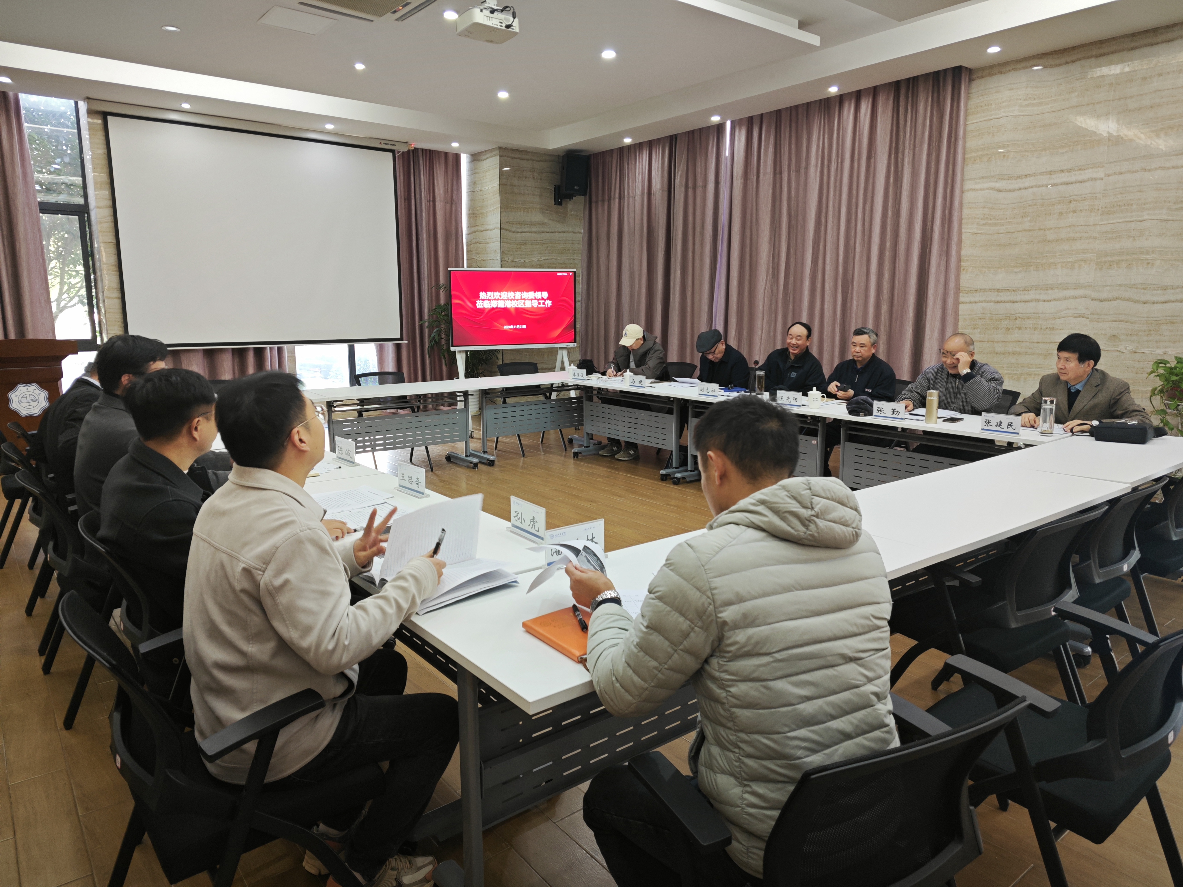 11月21日下午,校咨询委在郑蒲港校区行政楼一号会议室深入调研育人实践与探索。咨询委主任刘志祥,副主任马建、汪光阳、张勤、张建民,秘书长李德俊,郑蒲港校区管委会副主任陈波、虞忠华,主任助理王思奇及相关教职工参加会议。会议由咨询委秘书长李德俊主持。