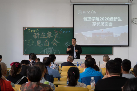 上午10点30分,管理学院新生家长见面会在教学楼C102举行。管理学院院长方承武、党总支书记马建、副院长刘晓农及学工办主任杨锴出席参会。本次会议由杨锴主持。首先方承武院长介绍管理学院和各专业基本情况,并强调,管理学院着力培养专门的管理人才和职业精英,努力培养每一个学生。随后马建书记介绍了学生在大学阶段可能遇到的学习和生活方面的问题,并就新生如何尽快适应大学生活、规划学习及就业目标等方面对新生和家长提出了建议。最后由方成武院长回答新生家长提问。