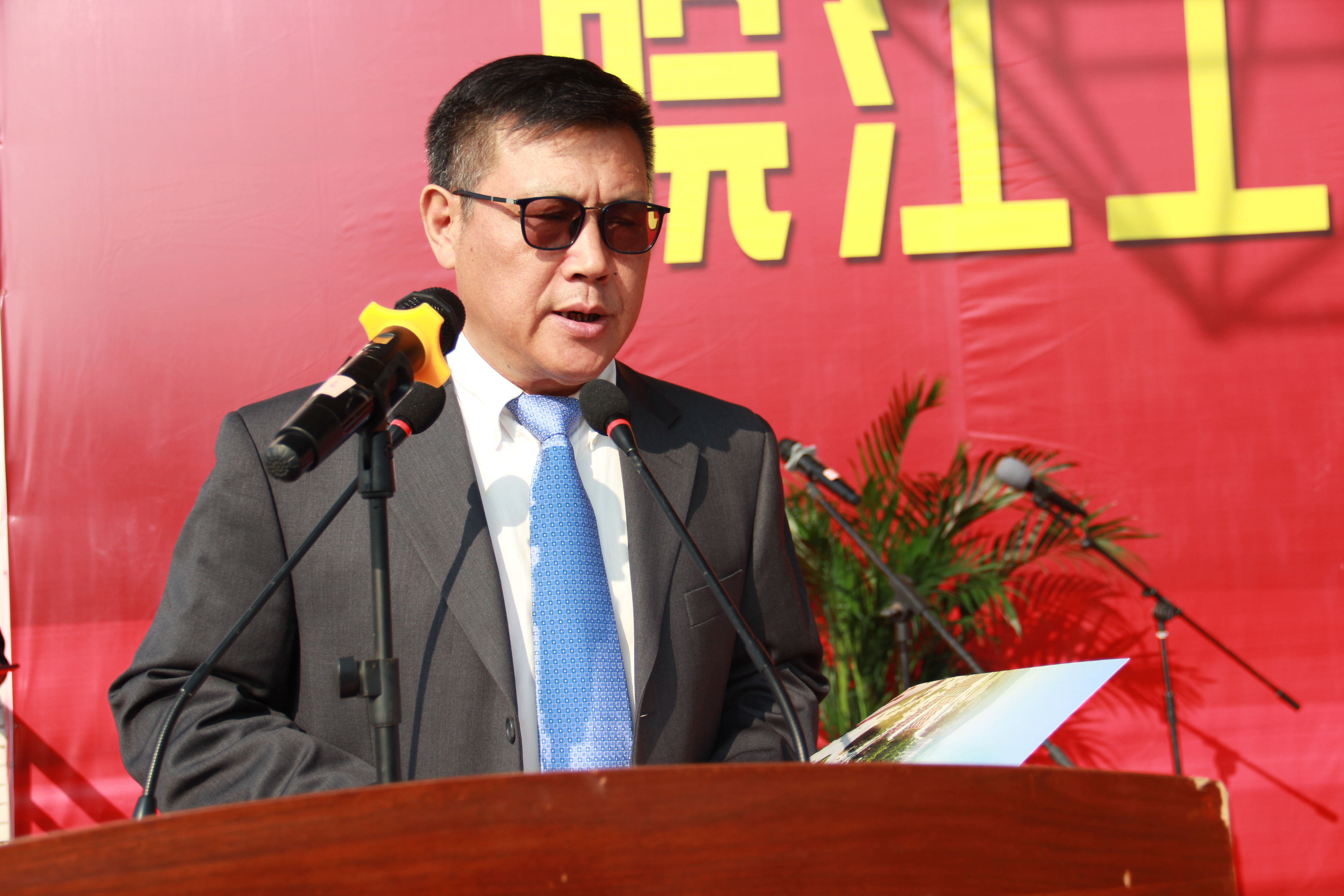 宣读完军训团成员名单后,刘志祥书记向军训部队授旗。