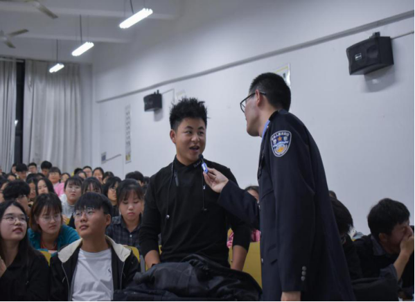 曹安琦警官向新生介绍了电信网路诈骗的基本含义、分析了近年来电信网络诈骗案件的高发趋势,讲解了常见电信网络诈骗犯罪类型和具体案例,告诫同学们在面对电信网络诈骗时如何预防和应对。他通过生动形象的讲解和丰富的视频资料展示,很好的吸引了师生的注意力,现场掌声不断。曹警官提醒同学们对于网络电信诈骗要做到“不听、不信、不点、不说、不转,信息要核实,密码要设牢,及时报案”。他希望通过此次专题讲座,能让同学们学有所获,提高同学们的自我防范意识和能力。