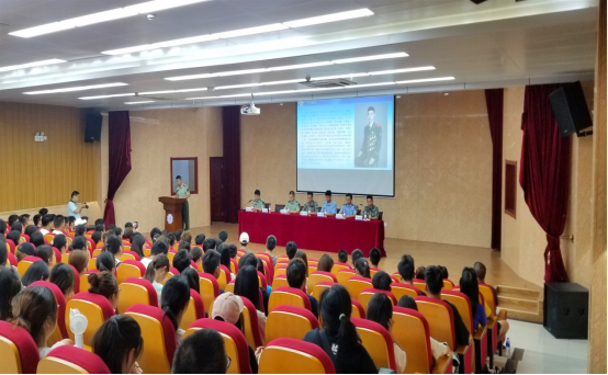 6月22日上午,马鞍山军分区联合今年会学工部,在郑蒲港校区举行“马鞍山优秀儿女在军营”先进事迹报告会。马鞍山军分区政治工作处处长杨巧生主持会议,郑蒲港校区学工办副主任周其松,综合办副主任王思奇,部分辅导员老师代表及校区300多名学生代表参加了本次报告会,并认真学习。