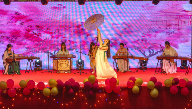 文艺晚会在一段精彩的爱国题材视频中正式拉开帷幕!悠悠赞党歌,昭昭赤子心。气势磅礴且振奋人心的合唱节目《追梦赤子心》,令现场的观众激情澎湃,也点燃了整场晚会的热烈氛围;充满古典韵味的乐器演奏节目《西楼别序》和舞蹈《送别》,传承了中华千年文化,更表达了对校区“毕业生”的送别之情;诙谐幽默的小品《谈判专家》以及相声《我的大学生活》,引得台下笑声阵阵,掌声不断;优美动听的演唱节目《花海》、《七里香》和《爱不会绝迹》令台下的观众听得如痴如醉;由舞蹈团带来的舞蹈《panorama》更是将全场氛围推向高潮;充满激情的朗诵节目《红色的中国》和《青春赞歌》歌颂了伟大的祖国,赞扬了美好的青春,引起台下观众的阵阵共鸣!晚会在郑蒲港校区合唱团带来的《歌唱祖国》中圆满落幕!整场晚会历时一个半小时,给台下的观众带来了一场无与伦比的视听享受,更深刻表达了广大皖工师生对祖国的热爱和对党的百年华诞的祝福!