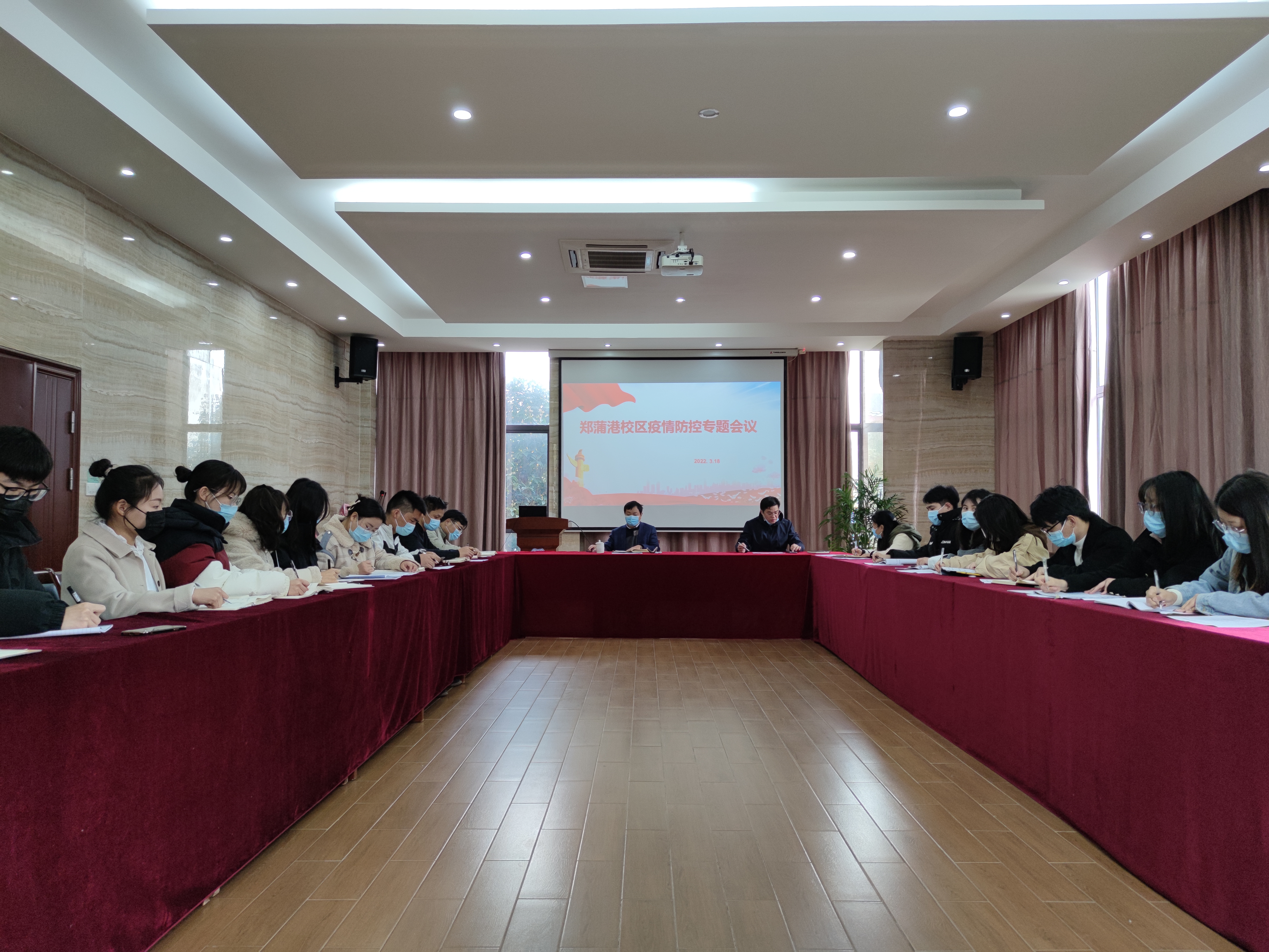 根据市疫情防控办要求,坚决阻断疫情传入校园,郑蒲港校区从3月14日起升级疫情防控措施,校园实行全封闭式管理,校区各部门扎实做好各项防疫工作。校区全体行政人员、辅导员、后勤保卫人员,以校为家,坚守校区一线岗位,与4652名学生共筑疫情防线。