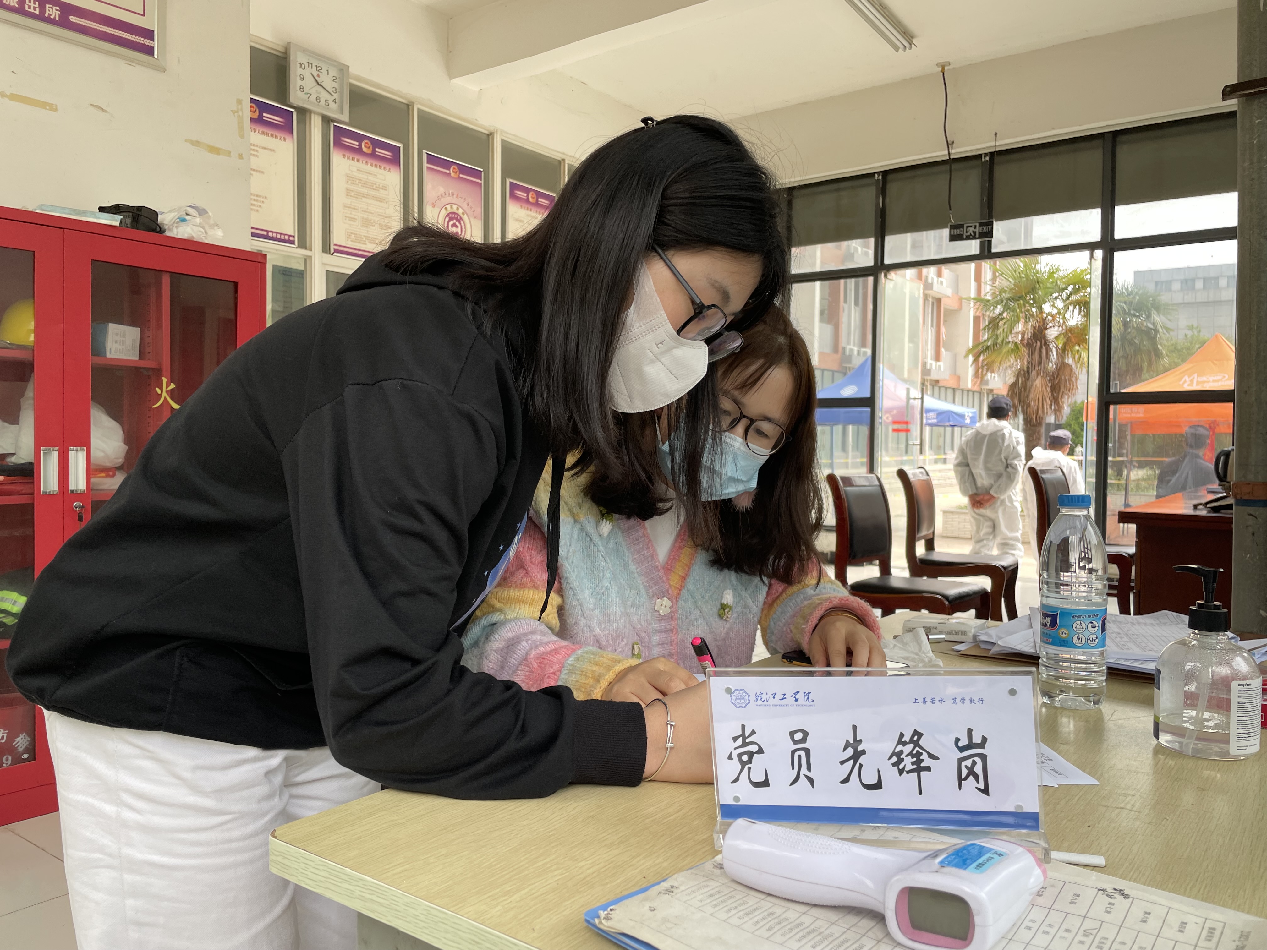 疫情封闭式管理期间,校区直属支部党员同志坚守岗位,守土尽责,服务师生,与广大师生上下一心,众志成城,让党旗高高飘扬在疫情防控的第一线。(郑蒲港校区直属支部供稿)