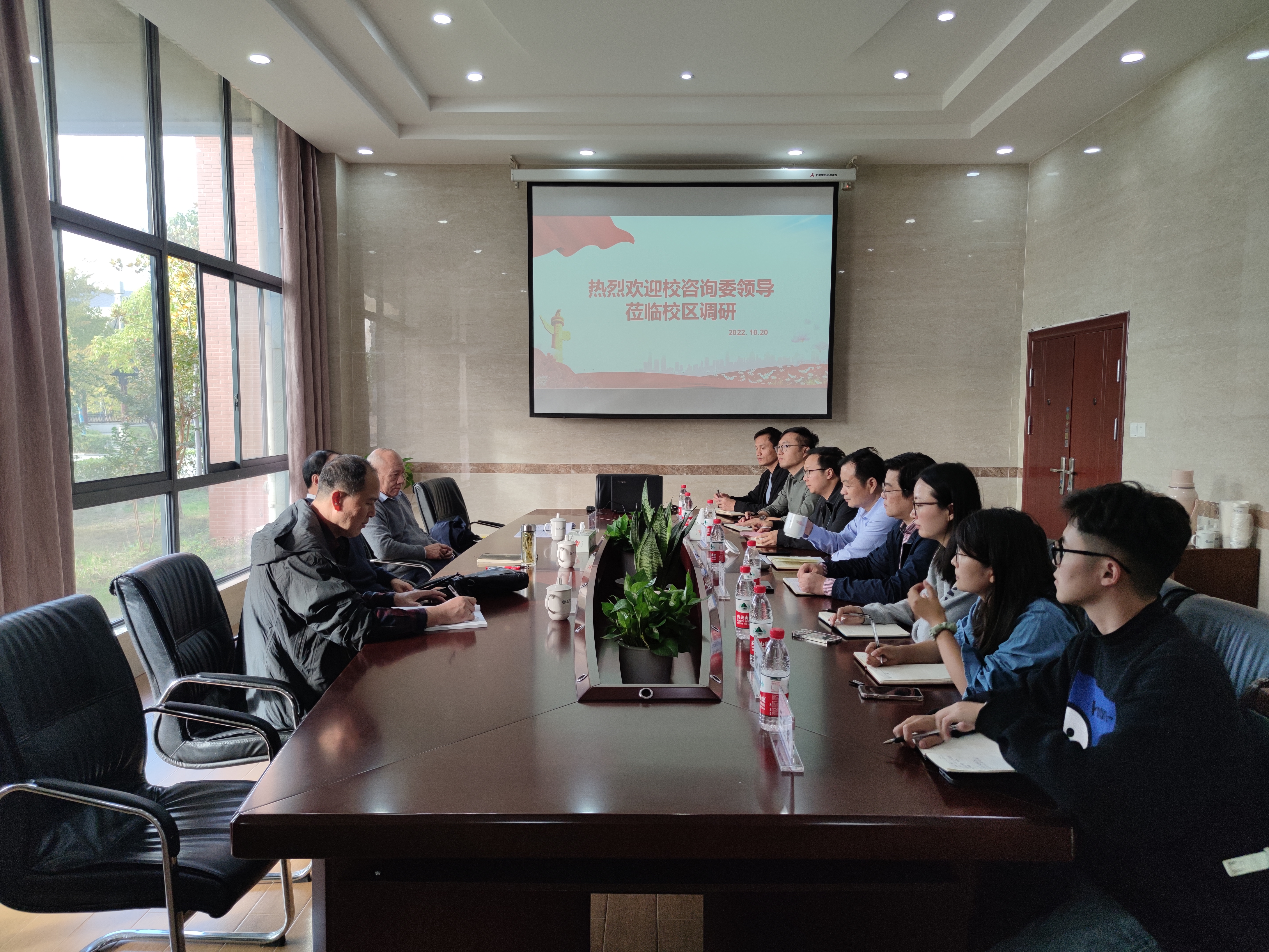 10月20日下午,校咨询委员会主任刘志祥,校咨询委员会副主任马建,校咨询委员会秘书长李德俊一行来郑蒲港校区调研工作。校咨询委员会副主任、郑蒲港校区管委会主任汪斌,郑蒲港校区管委会主任助理陈波,校区各科室负责人和辅导员代表陪同调研。